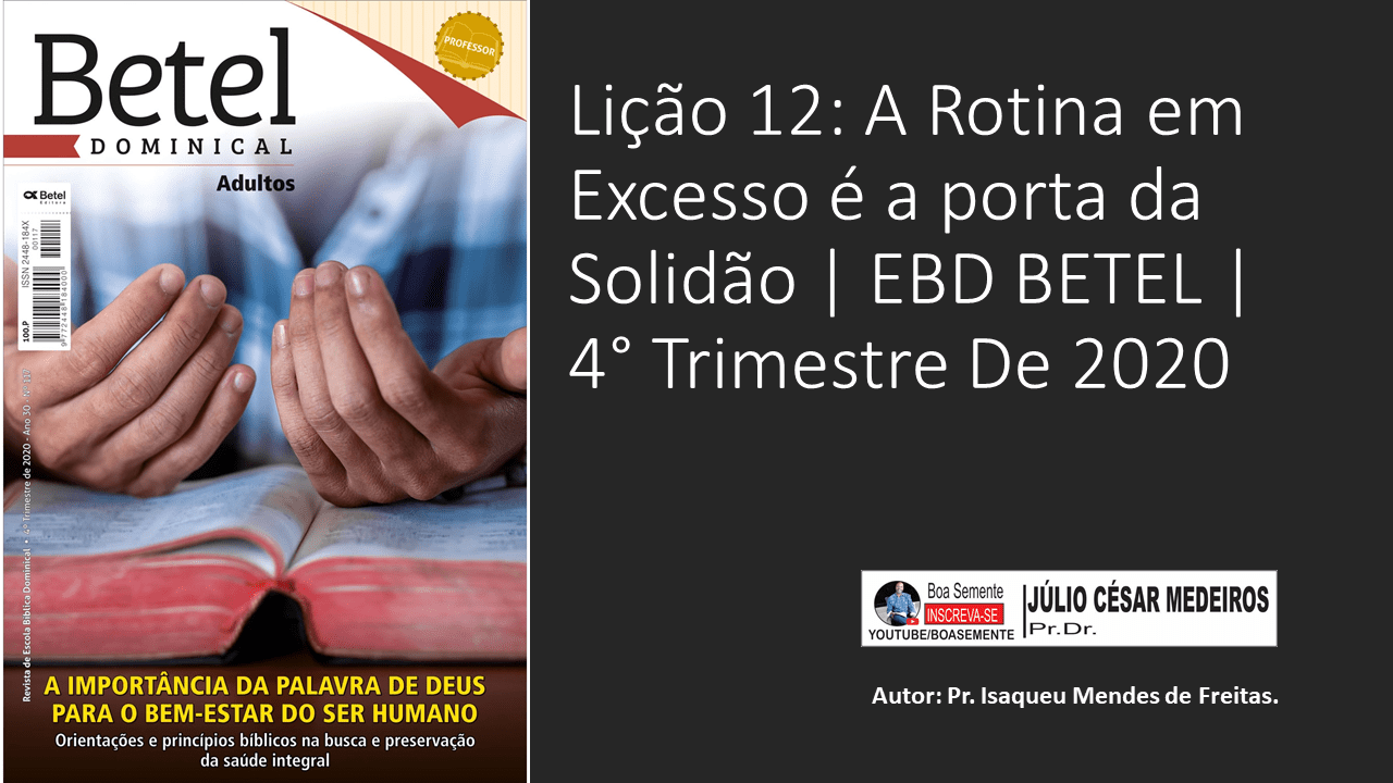 A Lição 12 A rotina em excesso é a porta da solidão é uma Pré aula da EBD.COM BASEADA NAS REVISTAS DA EDITORA BETEL DOMINICAL, 4º tri 2020