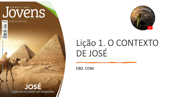 Quem nunca passou por injustiças, solidão, calúnia e decepção?Neste Trimestre a Revista Conectar+ Jovens preparou a temática “José – Lições de um jovem com propósitos” que levará você a uma profunda reflexão de grandes lições deixadas pelo jovem hebreu na trajetória de sua caminhada de fé.