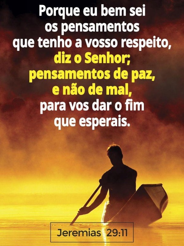 MENSAGEM PARA HOJE Pensamentos de paz Jeremias 29:11 "Eu é que sei que pensamentos tenho a vosso respeito, diz o SENHOR; pensamentos de paz e não de mal, para vos dar o fim que desejais." Em um mundo como o que vivemos, é bom saber que existem pessoas que pensam em nós e se preocupam... Continuar Lendo →