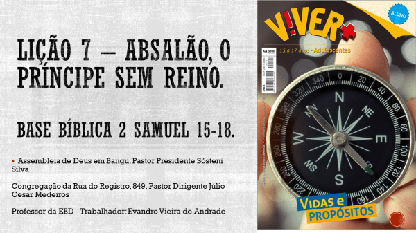 Lição 7 Absalão o príncipe sem reino editora Betel Revista Viver+ adolescentes, 3° tri 2021