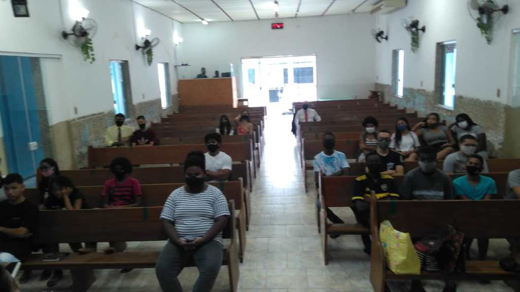 FIZEMOS UMA OFICINA EM QUE OS JOVENS APRESENTARAM SEUS CURSOS UNIVERSITÁRIOS E AS SUAS PERSPECTIVAS NO MERCADO DE TRABALHO PARA OS DEMAIS PARTICIPANTES